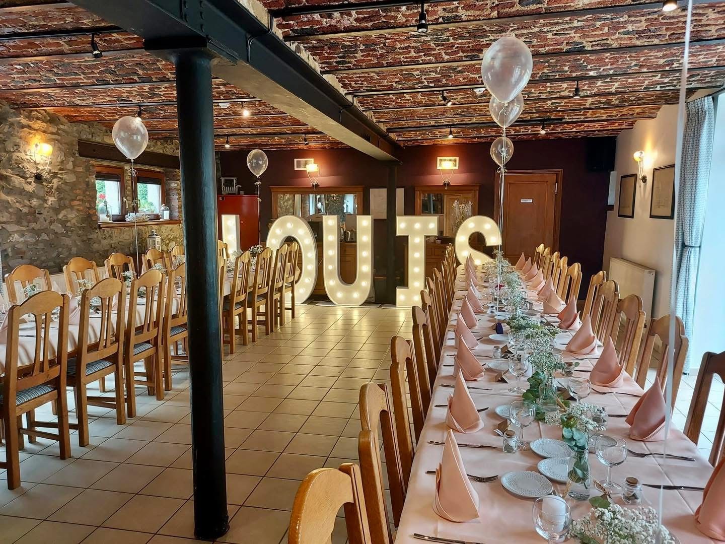 Notre salle accueille vos mariages, fêtes ou anniversaires dans un esprit champêtre et convivial.