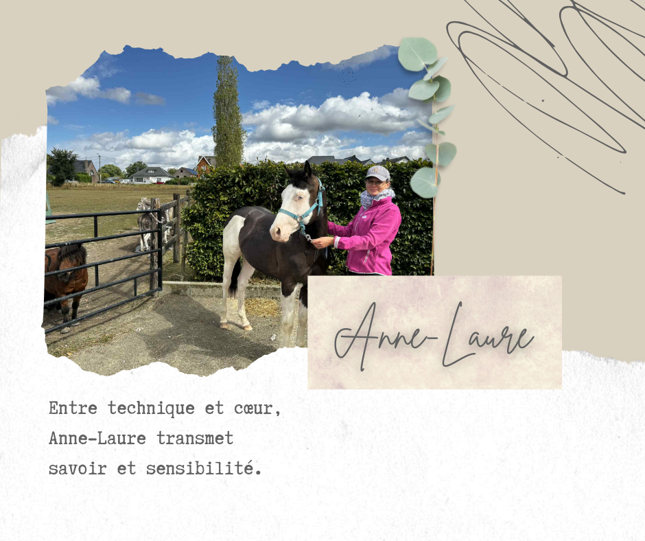 Anne-Laure Kesler, monitrice d’équitation diplômée du BEES 1er degré option équitation depuis 2005, cumule plus de 20 ans d’expérience dans l’enseignement, le travail à pied, le débourrage des jeunes chevaux et le coaching en compétition.